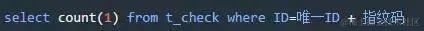 - 返回如果为0 表示没有操作过,那业务操作后就可以insert into t_check(唯一ID+指纹码)
