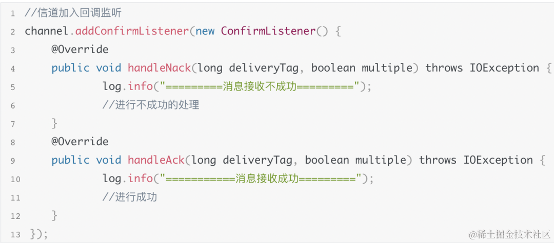 上面的伪代码,有两个处理消息方式,就是ack回调和nack回调。\