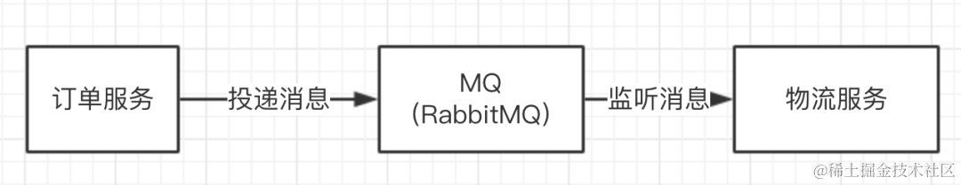 (1)订单服务投递消息给MQ中间件 (2)物流服务监听MQ中间件消息,从而进行消费