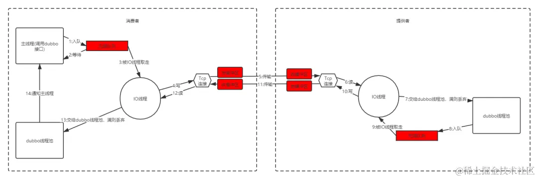 因为我们的消费者数量和提供者数量都不多,所以很可能是连接数不够,导致网络传输出现了瓶颈。以下我们通过详细分析Dubbo协议和一些实验来验证我们的猜测。