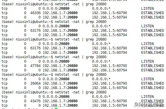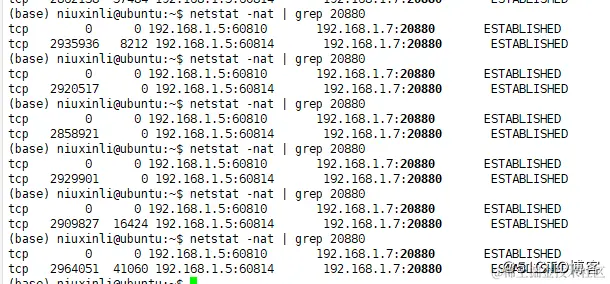 ESTAB 0 27474 192.168.1.7:20880 192.168.1.5:60760