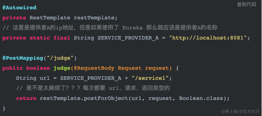 这样每次都调用 RestRemplate 的 API 是否太麻烦,我能不能像调用原来代码一样进行各个服务间的调用呢?\