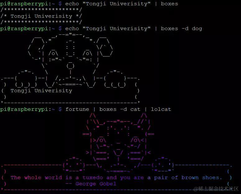 echo "Tongji Univerisity" | boxes -d dog