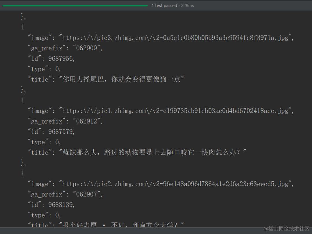 完成之后我们可以写一个测试类来验证下我们的解析器的运行情况。我们可以自己定义一组JSON串也可以通过HttpUtil工具类从网上获取。最后通过FormatUtil类来规范我们输出。
