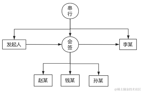 我又查了一天啥是会签节点,发现会签节点就是一个大节点,里面有很多审批人,当这个大节点里的所有人都审批通过后,才能进入下一个节点。