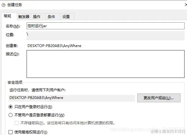 win10 定时运jar 包 在任务计划程序中创建任务
