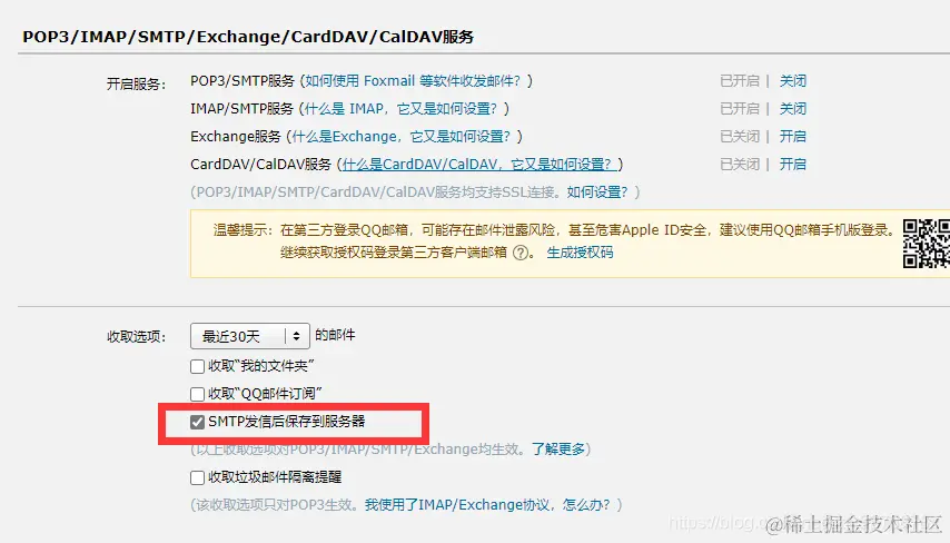 在编写配置前需要,在浏览器登录自己的邮箱在账号安全中设置开启POP3/SMTP服务