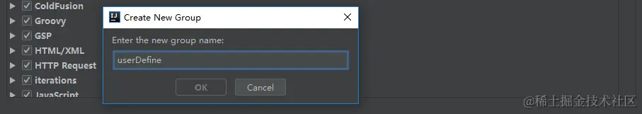 在弹出的对话框中填写分组名,我这里叫做 userDefine: