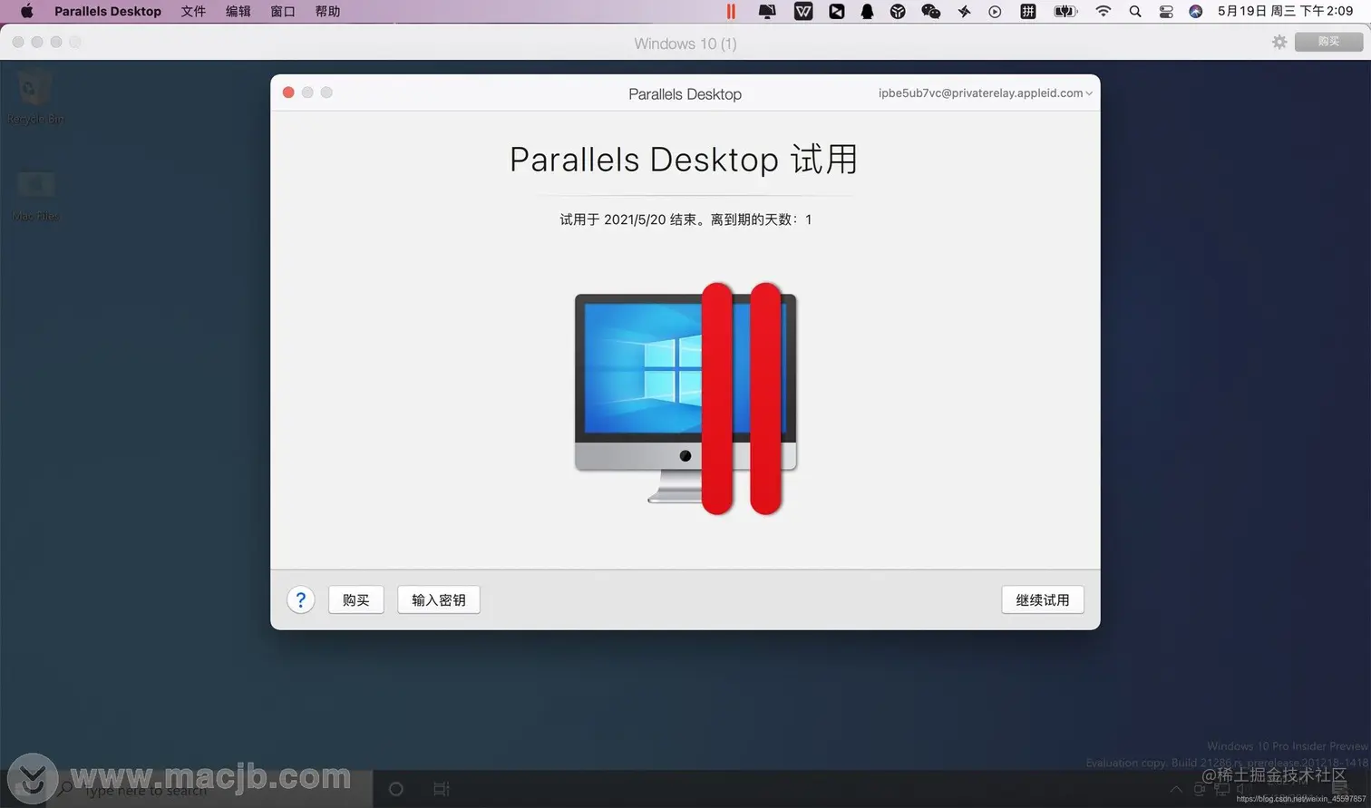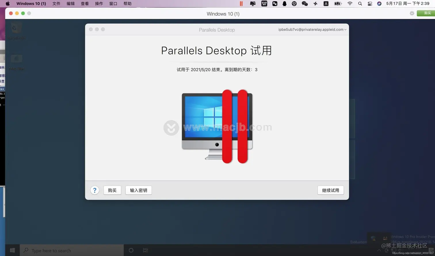 Parallels Desktop 16.5 M1使用到期怎么办? 路过mac 2021-05-25 444 阅读1分钟 Parallels Desktop 16.5 M1使用到期怎么办?将mac的系统时间改为使用到期之前的时间即可: 就比如现在我的体验到期时间是2021-5-20号 接下来修改mac的当前系统时间,点击时间与日期 将当前时间改为到期日期之前时间,再去查看试用时间(现已变成3天,改时间***还是依旧的稳)