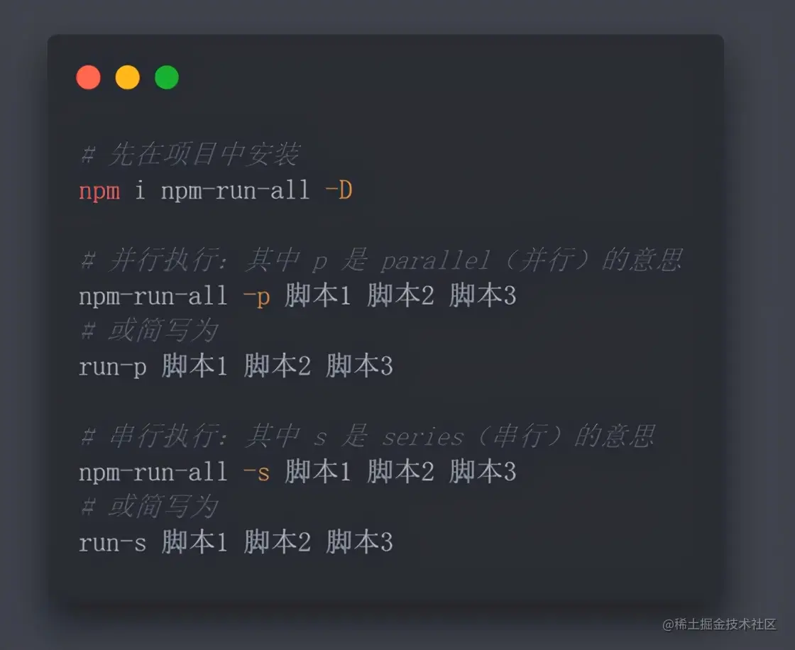 另外需要注意的是 windows 系统环境下, & 并行执行是不被支持的,我们可以借助 npm-run-all 插件来实现不同任务的执行。