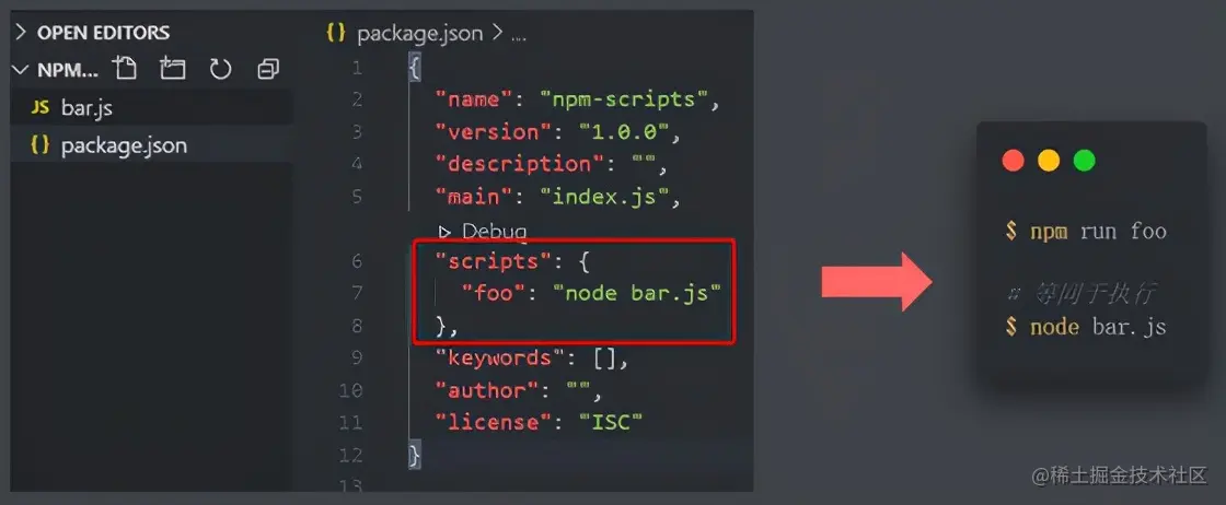 配置完成后,命令行执行 npm run foo 就能够看到 foo.js 的执行结果。