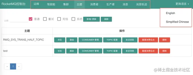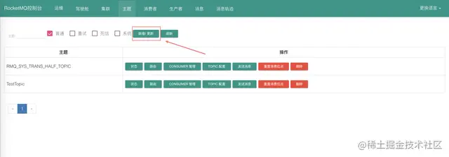 rocketmq topic 可以在控制台创建,但是为了声明一个本镜像安装的一个 bug,还是选择通过原生命令测试