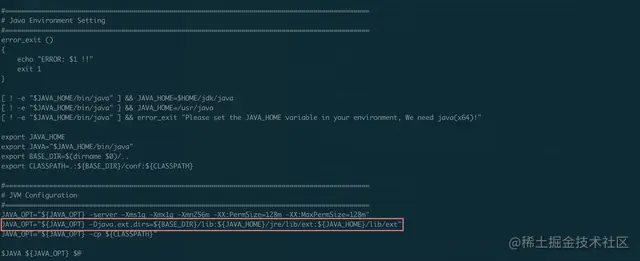 JAVA_OPT="${JAVA_OPT} -Djava.ext.dirs=${BASE_DIR}/lib:${JAVA_HOME}/jre/lib/ext:${JAVA_HOME}/lib/ext:/usr/lib/jvm/java-1.8.0-openjdk-1.8.0.212.b04-0.el7_6.x86_64/jre/lib/ext"
