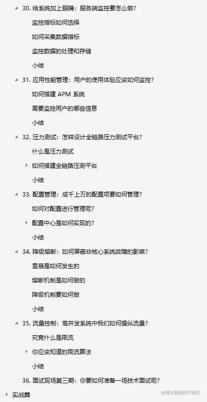 这份手册分为基础篇、数据库篇、缓存篇、消息队列篇、分布式服务篇、维护篇、实战篇