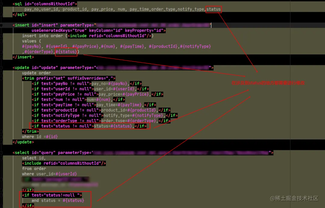 传统mybaits需要三步:首先需要在订单表里加个字段,然后在订单的实体类添加这个属性,并且将所有dao层设计该状态的的查询sql都修改一遍,加上这个字段。