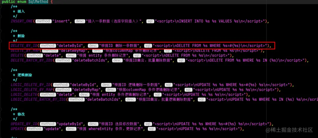 继续研究源码发现:sqlMethod本质上是一个枚举类,存储了两个关键的元素:
