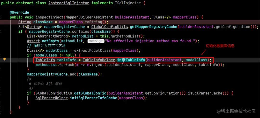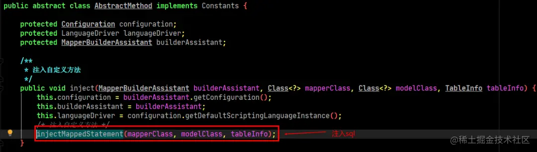 继续研究AbstractMethod抽象类,inject方法实现了自动注入sql的动作。
