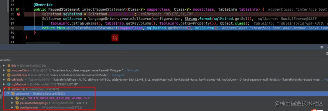 下面就通过debug由上而下分析mybatis-plus是如何生成业务sql以及自动注入的。