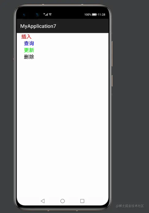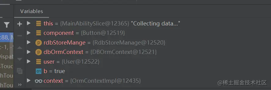 MainAbilitySliceimport com.example.myapplication.BookStore;import com.example.myapplication.ResourceTable;import com.example.myapplication.User;import com.example.sqlitelibrary.DBManage;import com.example.sqlitelibrary.DBOrmContext;import com.example.sqlitelibrary.utils.Log;import ohos.aafwk.ability.AbilitySlice;import ohos.aafwk.content.Intent;import ohos.agp.components.Button;import ohos.agp.components.Component;import ohos.data.DatabaseHelper;import ohos.data.orm.OrmContext;import ohos.data.orm.OrmPredicates;import ohos.data.rdb.RdbStore;import ohos.data.rdb.ValuesBucket;import java.util.ArrayList;import java.util.List;public class MainAbilitySlice extends AbilitySlice implements Component.ClickedListener { private DatabaseHelper helper; private RdbStore store; private OrmContext context; @Override public void onStart(Intent intent) { super.onStart(intent); super.setUIContent(ResourceTable.Layout_ability_main); helper = new DatabaseHelper(this); DBManage dbManger = new DBManage("user.db","user"); context = dbManger.getConnectionContext(helper, BookStore.class);// DBManage dbManger = new DBManage("user.db");// store = dbManger.getConnectionStore(helper,"user"); Button btnInsert = (Button) findComponentById(ResourceTable.Id_btn_insert); Button btnQuery = (Button) findComponentById(ResourceTable.Id_btn_query); Button btnDelete = (Button) findComponentById(ResourceTable.Id_btn_delete); Button btnUpdate = (Button) findComponentById(ResourceTable.Id_btn_update); btnInsert.setClickedListener(this::onClick); btnQuery.setClickedListener(this::onClick); btnDelete.setClickedListener(this::onClick); btnUpdate.setClickedListener(this::onClick); } @Override public void onActive() { super.onActive(); } @Override public void onForeground(Intent intent) { super.onForeground(intent); } @Override public void onClick(Component component) {// RdbStoreManage rdbStoreMange = new RdbStoreManage();// ValuesBucket values = new ValuesBucket();// values.putInteger("id", 1);// values.putString("name", "zhangsan");// values.putInteger("age", 18);// values.putDouble("salary", 100.5);// values.putByteArray("blobType", new byte[] {1, 2, 3});// rdbStoreMange.setSql(store, "insert into user values(zhangsan, 18, 100.5, byte[1,2,3])");// long id = rdbStoreMange.insert(store,"user", values);// System.out.println(id); DBOrmContext dbOrmContext = new DBOrmContext(); switch (component.getId()) { case ResourceTable.Id_btn_insert: //插入数据 //第一次使用user对应的表的时候,如果有这张表就直接使用,没有就创建表 User user = new User(); user.setFirstName("Zhang"); user.setLastName("San"); user.setAge(29); user.setBalance(100.51); boolean b = dbOrmContext.insert(context, user); Log.i("插入成功"); System.out.println(b); break; case ResourceTable.Id_btn_query: //条件查询 List users = new ArrayList<>(); OrmPredicates query = context.where(User.class).equalTo("lastName", "San"); users = dbOrmContext.query(context, query); break; case ResourceTable.Id_btn_delete: //条件删除 OrmPredicates delete = context.where(User.class).equalTo("lastName", "San"); int delete1 = dbOrmContext.delete(context, delete); System.out.println(delete1); break; case ResourceTable.Id_btn_update: //条件更新 ValuesBucket valuesBucket = new ValuesBucket(); valuesBucket.putInteger("age", 31); valuesBucket.putString("firstName", "Zhang"); valuesBucket.putString("lastName", "San"); valuesBucket.putDouble("balance", 300.51); OrmPredicates update = context.where(User.class).equalTo("userId", 1); int update1 = dbOrmContext.update(context, valuesBucket, update); System.out.println(update1); break; } dbOrmContext.flush(context); }}user.java@Entity(tableName = "user", ignoredColumns = {"ignoreColumn1", "ignoreColumn2"}, indices = {@Index(value = {"firstName", "lastName"}, name = "name_index", unique = true)})public class User extends OrmObject { // 此处将userId设为了自增的主键。注意只有在数据类型为包装类型时,自增主键才能生效。 @PrimaryKey(autoGenerate = true) private Integer userId; private String firstName; private String lastName; private int age; private double balance; private int ignoreColumn1; private int ignoreColumn2; // 开发者自行添加字段的getter和setter 方法