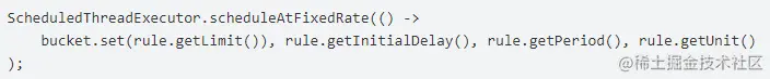 根据上述了解的令牌桶算法可以得知,令牌桶需要一个ScheduledThread不断的放入令牌,这部分的代码如下: