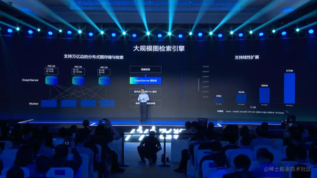 对于图检索环节,5 月 20 日,百度正式发布了大规模图检索引擎,将图的邻接表通过双层哈希切分方式存放到不同 graphserver 上,worker 端请求 graphserver 通过图检索引擎获得子图进行训练。经过 Intel CPU 环境上实测,该引擎不仅支持万亿边图模型训练,也能够很好地支持线性扩展。