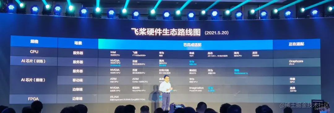 强大的 AI 平台不仅需要软件和算法,也需要 AI 芯片的算力,百度飞桨正在与各家芯片厂商进行适配,同时也在研究下一代计算机架构。