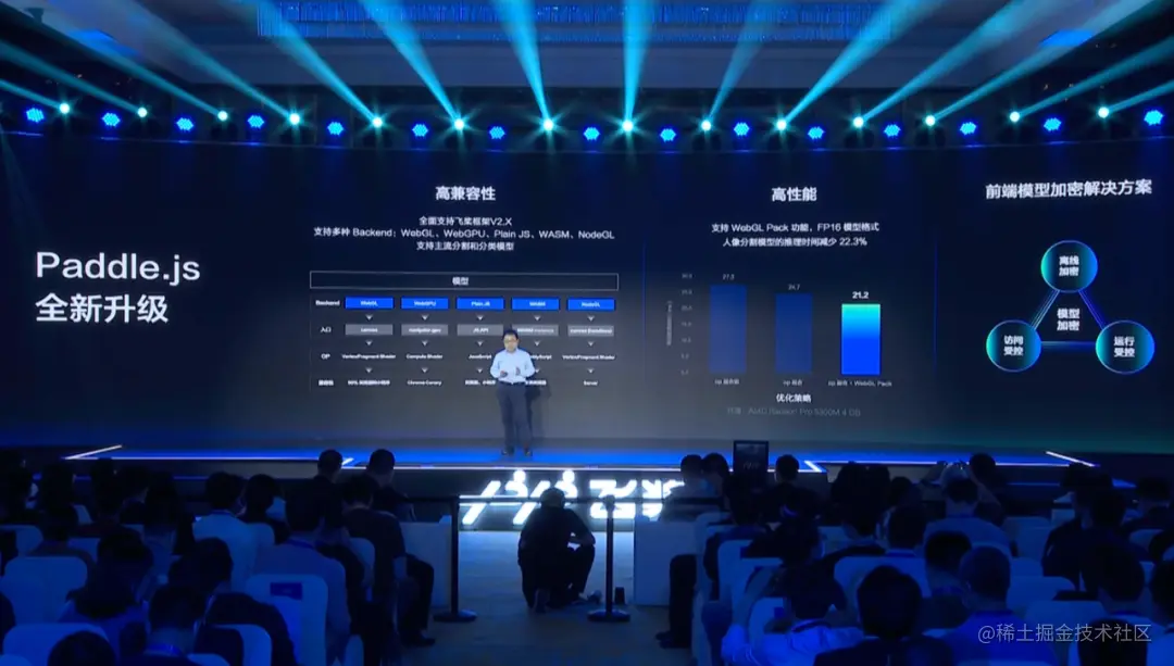 另外,Paddle.JS 还推出了前端模型加密解决方案,在模型文件离线加密、访问受控、运行推理受控三个重要环节加强保障,有效提高业务的安全性。