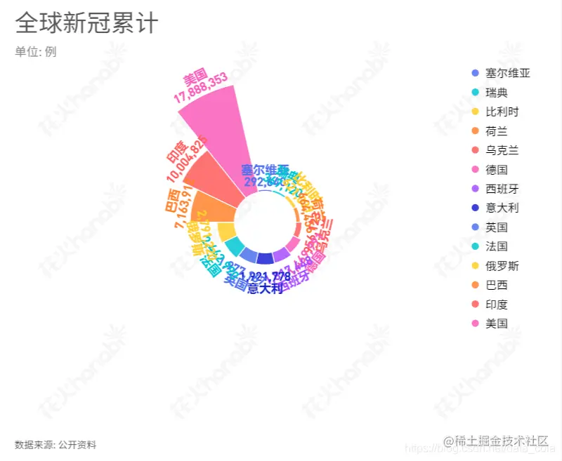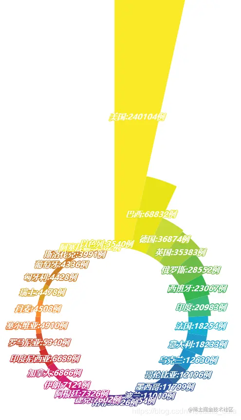 将圆环图填充为无色,并设置标签格式,最后得到如图所示的南丁格尔玫瑰图: