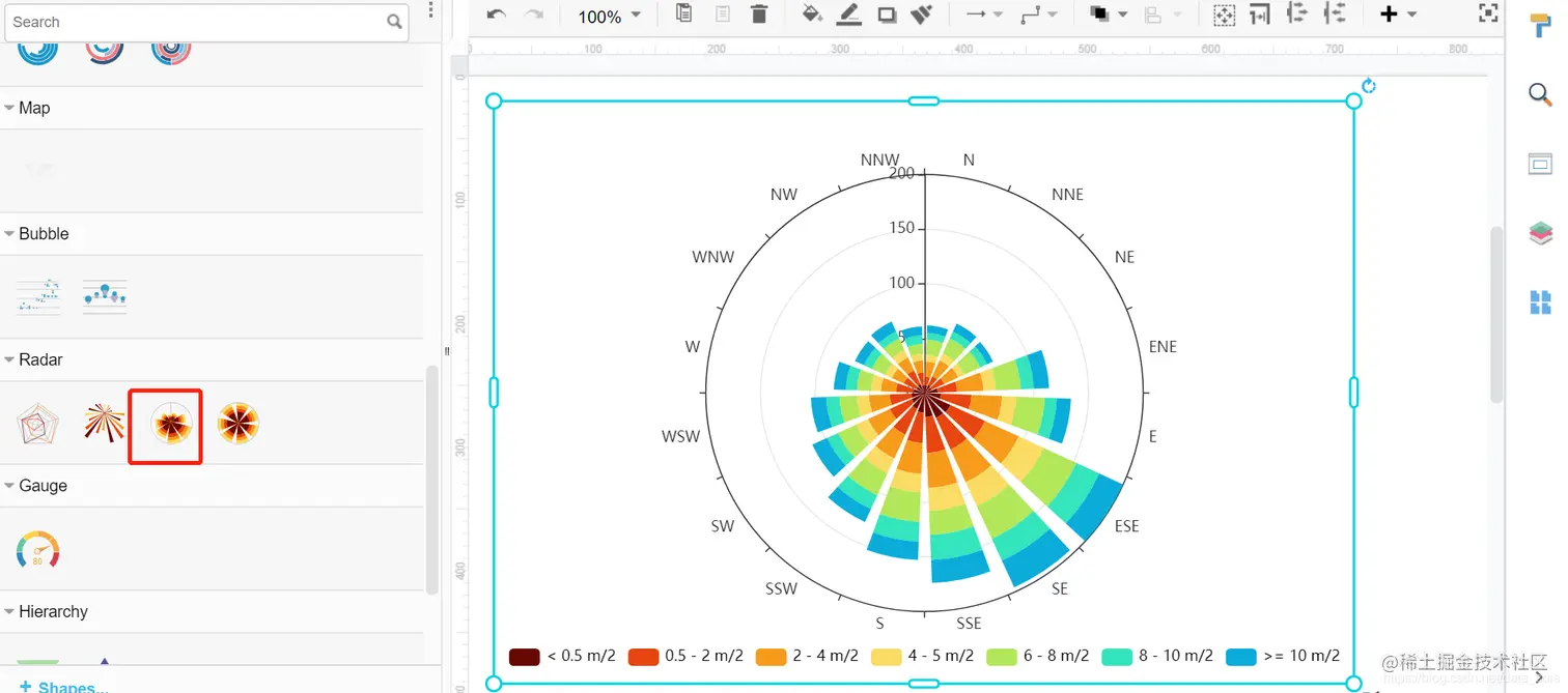 选择基础玫瑰图,也可选择圆环状的。