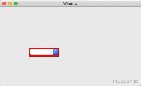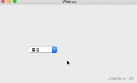 let speedPopBtn = NSPopUpButton(frame: NSMakeRect(100.0, 100.0, 100.0, 30.0)) self.view .addSubview(speedPopBtn) //设置背景色(一般不会去设置) speedPopBtn.wantsLayer = true speedPopBtn.layer?.backgroundColor = NSColor.red.cgColor展示效果:NSPopUpButton背景色在一般情况不会去设置!