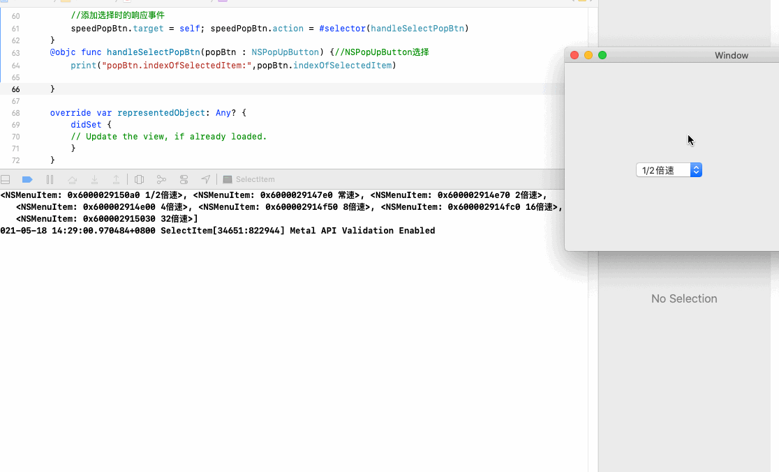 @objc func handleSelectPopBtn(popBtn : NSPopUpButton) {//NSPopUpButton选择
