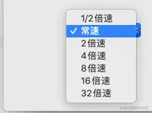 [<NSMenuItem: 0x600002903720 1/2倍速>, <NSMenuItem: 0x600002911180 常速>, <NSMenuItem: 0x6000029034f0 2倍速>, <NSMenuItem: 0x600002903480 4倍速>, <NSMenuItem: 0x6000029035d0 8倍速>, <NSMenuItem: 0x600002903640 16倍速>, <NSMenuItem: 0x6000029036b0 32倍速>]