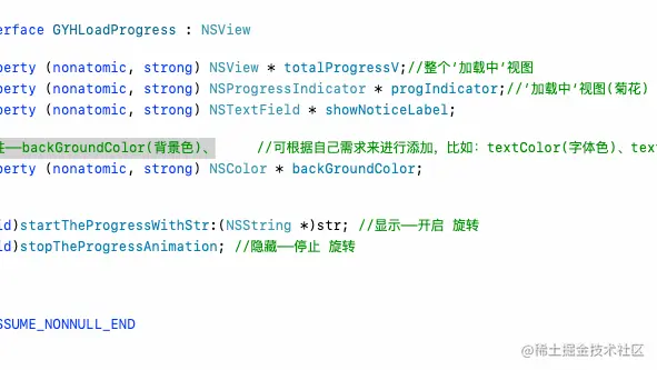 GYHLoadProgress * gyhProgress = [[GYHLoadProgress alloc] initWithFrame:NSMakeRect(0, 0, progressV_W, progressV_W)];//整个‘加载中’视图