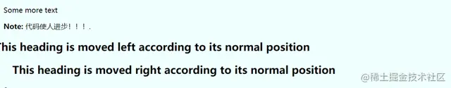 <h2 class="pos_left">This heading is moved left according to its normal position</h2>