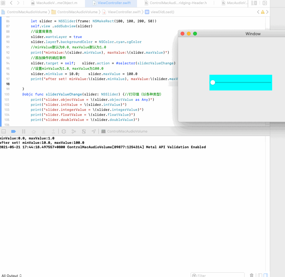 @objc func sliderValueChange(slider: NSSlider) {//打印值(以各种类型)