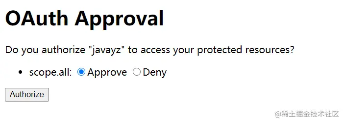 输入用户名和密码之后,oauth会让你选择是否授权,这一步可以理解为微信第三方登陆时,微信扫码后在手机上点击授权。