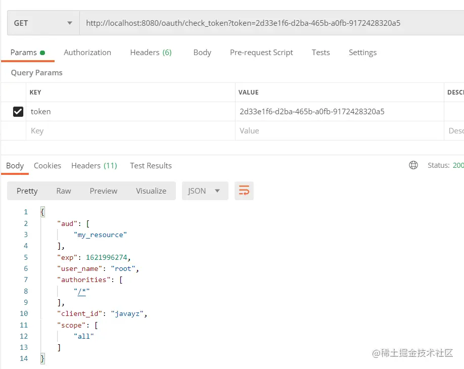 由于在上面的代码中,我们开启了允许表单认证,因此可以通过接口判断token是否有效: