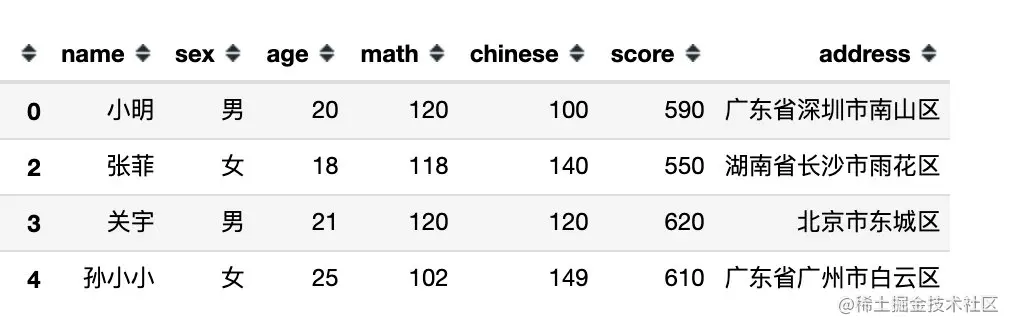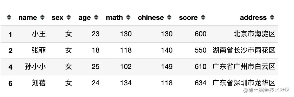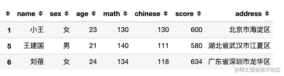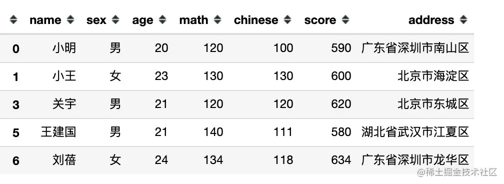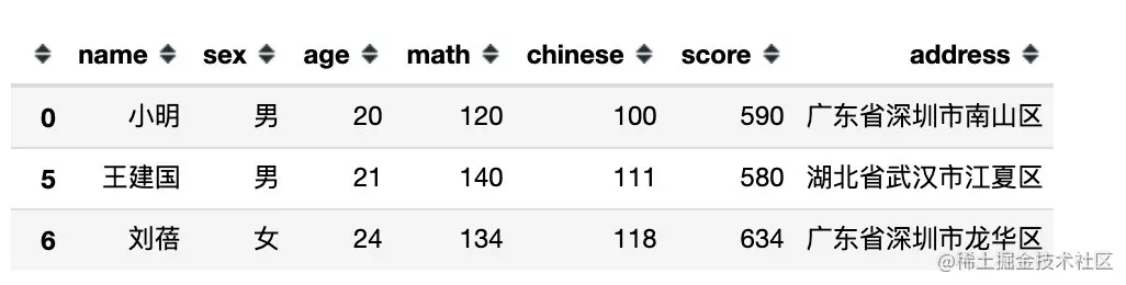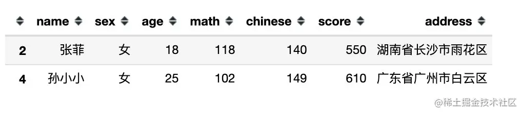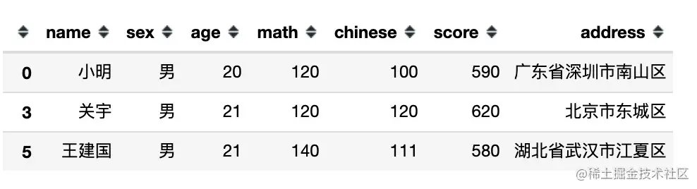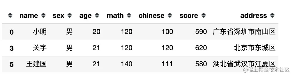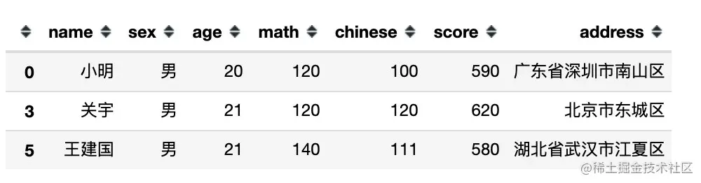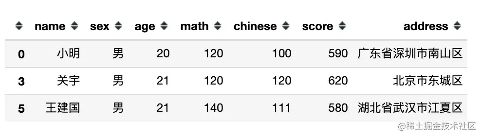 df[df.sex == '男'] # 等同于 df[df['sex'] == '男']