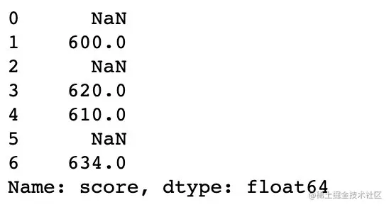 s.mask(s>=600) # 和where相反:返回的都是小于600的数据