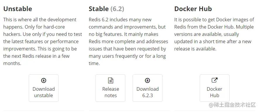 上面两张图显示的都是截止到目前,Redis最新版本,辰哥已经把这上面提到的安装包下载好,后台回复:redis安装包,直接获取。