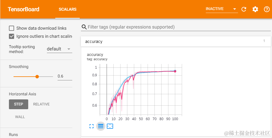 我们已经能够使用学习率衰减策略了,同时也可以训练、验证、测试了。那么,我们可能想要了解训练过程中的损失和准确率的可视化结果。我们可以使用tensorboard来进行可视化。可参考: