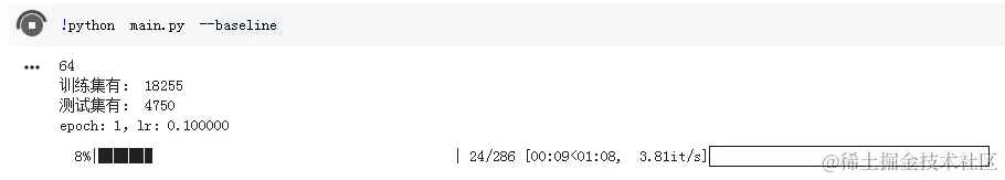 没有加--batch_size,则batch_size默认为64,也就是18255/64约等于286。然后我们使用了--baseline,即默认使用resnet18模型。