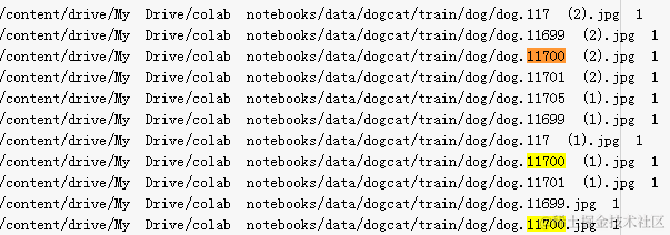 #['/content/drive/My', 'Drive/colab', 'notebooks/data/dogcat/train/cat/cat.9997.jpg', '0']