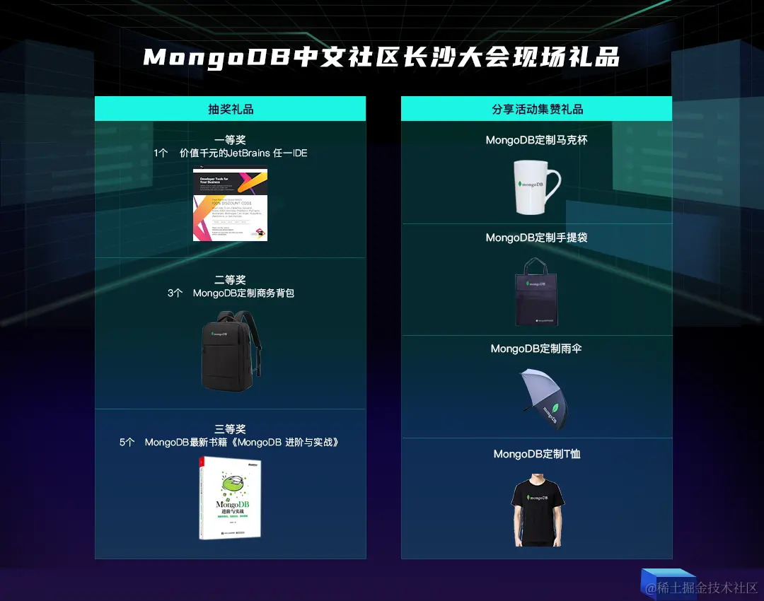 JetBrains IDE,MongoDB定制商务背包,MongoDB最新书籍《MongoDB 进阶与实战》,抽奖大礼尽在MongoDB中文社区长沙大会活动现场等你拿!