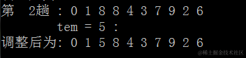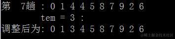 调整后为: 0 1 2 3 4 5 6 7 8 9