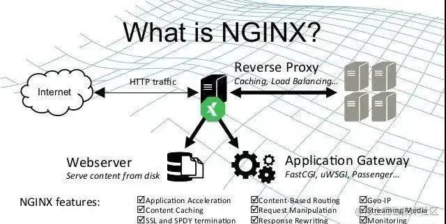 Nginx (engine x) 是一款轻量级的 Web 服务器 、反向代理服务器及电子邮件(IMAP/POP3)代理服务器。