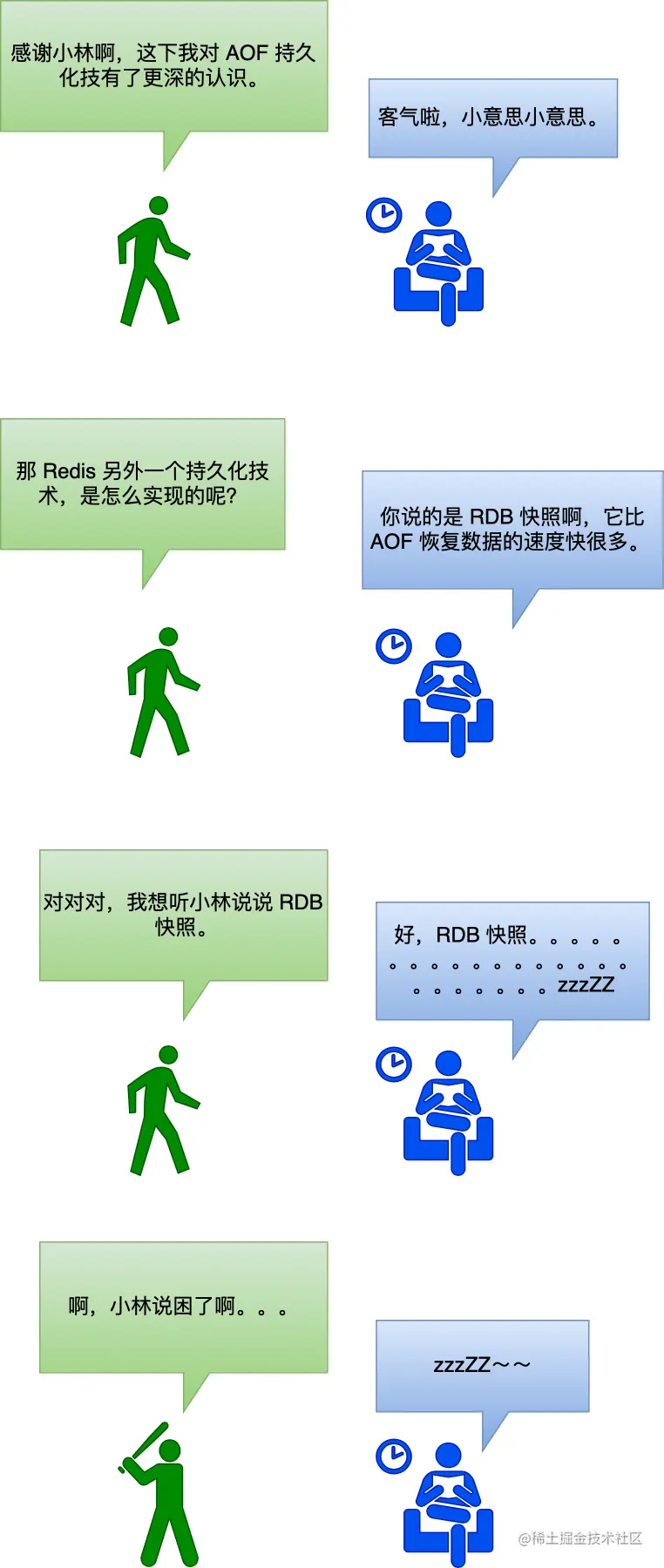 这次小林给大家介绍了 Redis 持久化技术中的 AOF 方法,这个方法是每执行一条写操作命令,就将该命令以追加的方式写入到 AOF 文件,然后在恢复时,以逐一执行命令的方式来进行数据恢复。