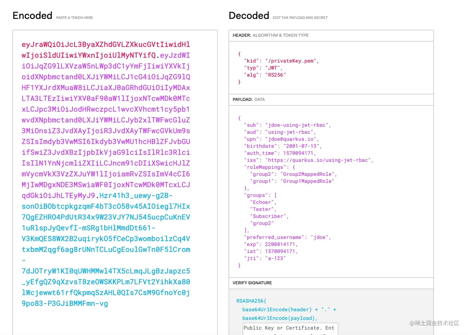 返回的状态码是 401 Unauthorized 因为没有在请求中携带令牌(JWT)提供授权信息。只有带有 group Echoer 有效令牌才能访问评级服务。