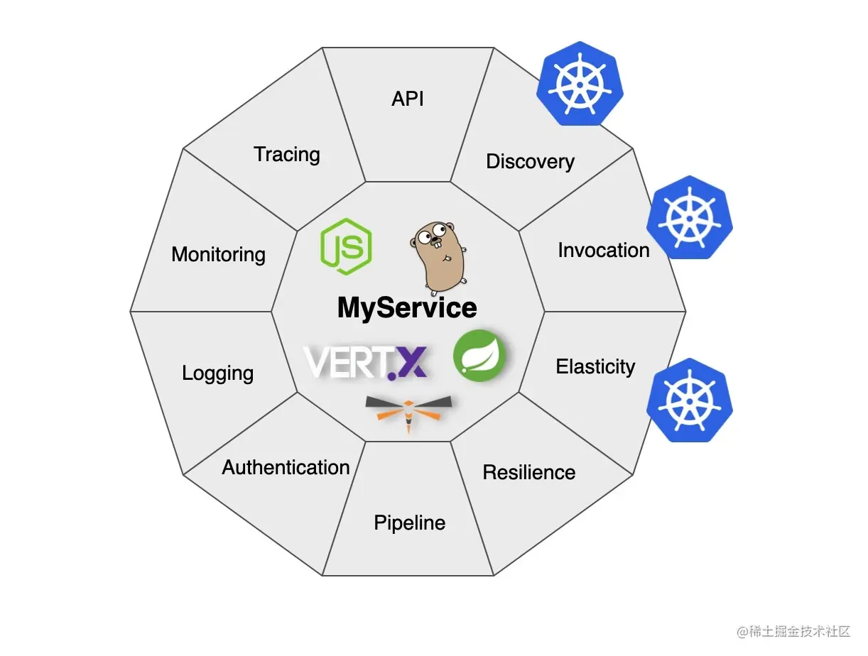 但是其余的微服务特性又如何呢?Kubernetes 仅涵盖其中的三个,那么我们如何实现剩下的呢?