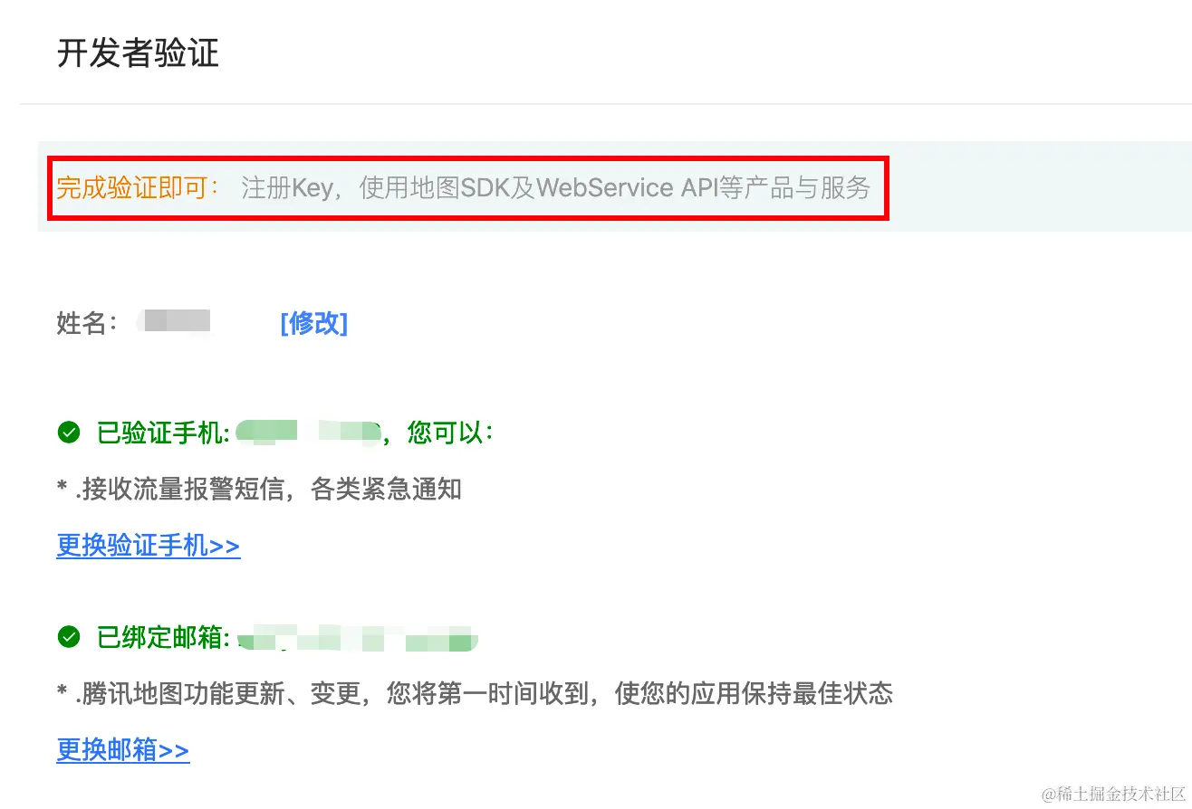 点击控制台,进入开发者信息界面,补全基本用户信息,完成验证。